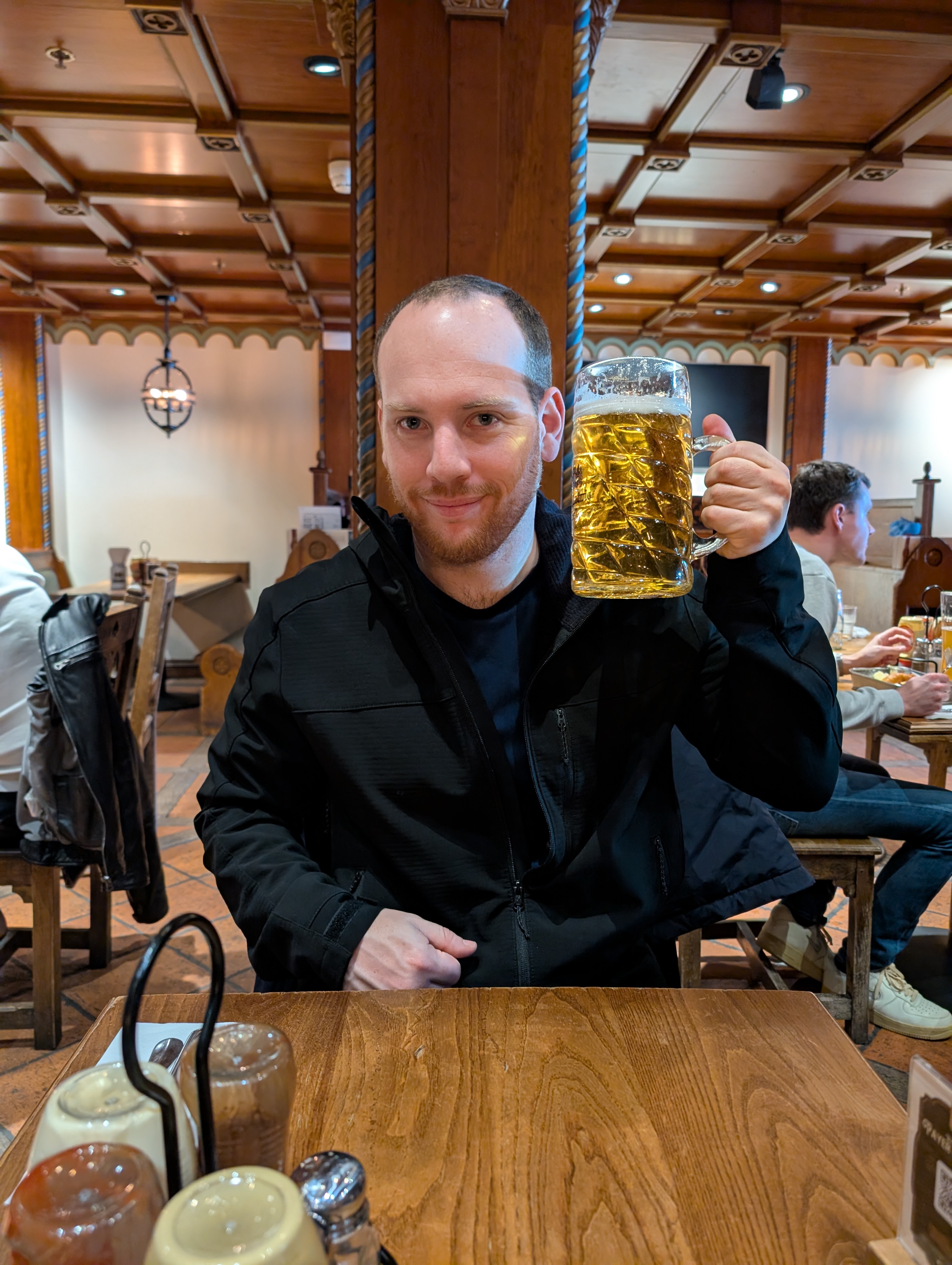 Aquí un exemple de un dels dies que vam menjar fora. És cert que va ser una hamburguesa de 25€ però el Esteve la va gaudir molt. La Laia també va gaudir molt… però la cervesa de la foto :P